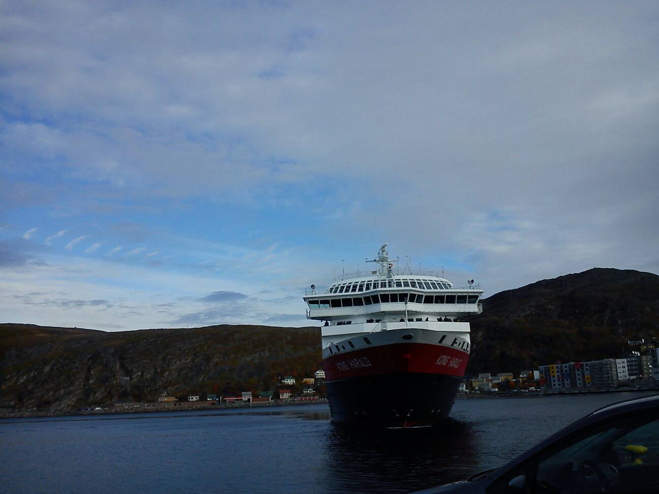 Vi koser oss.Fint vær, men litt grått.Snart på Finnsnes.